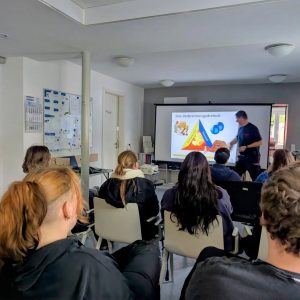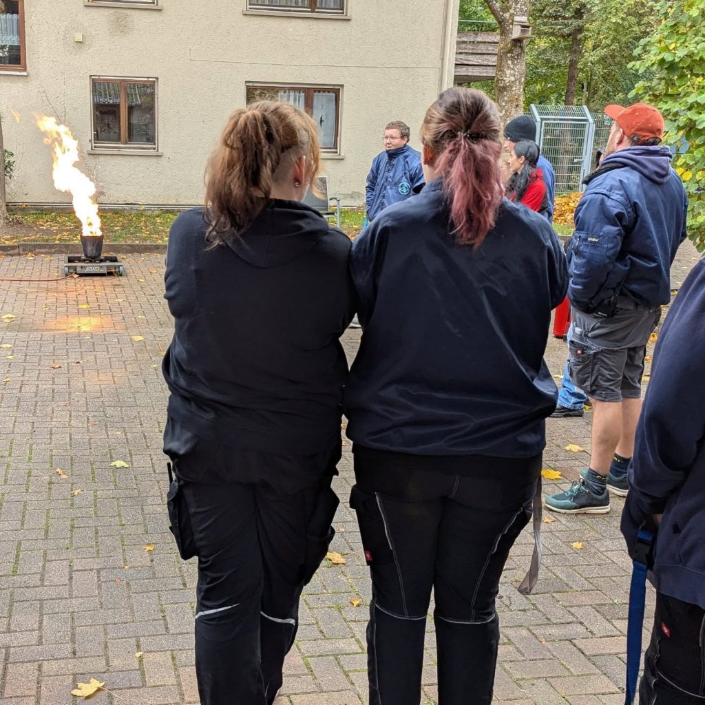 Am 21.10.25 hatten wir einen ganz besonderen Kurs. Wir bekamen eine Brandschutzunterweisung der Berufsfeuerwehr Karlsruhe. Wir lernten einiges über die Arbeit der Feuerwehr, wodurch und wie schnell Feuer entsteht und welche ersten Maßnahmen man dagegen treffen kann.
