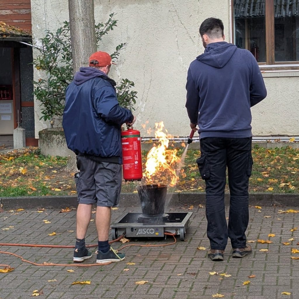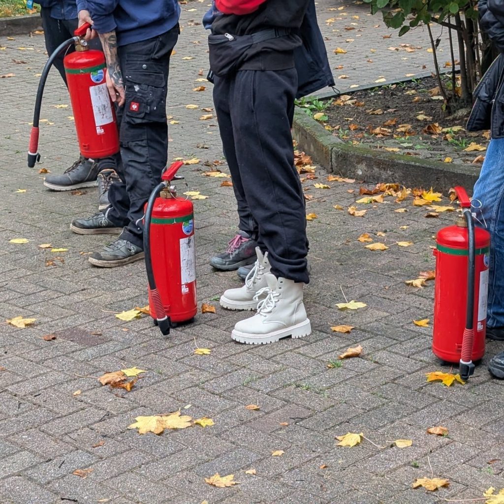 Zum Abschluss wurde uns der Umgang mit einem Feuerlöscher vertraut gemacht und wir durften Feuer löschen.