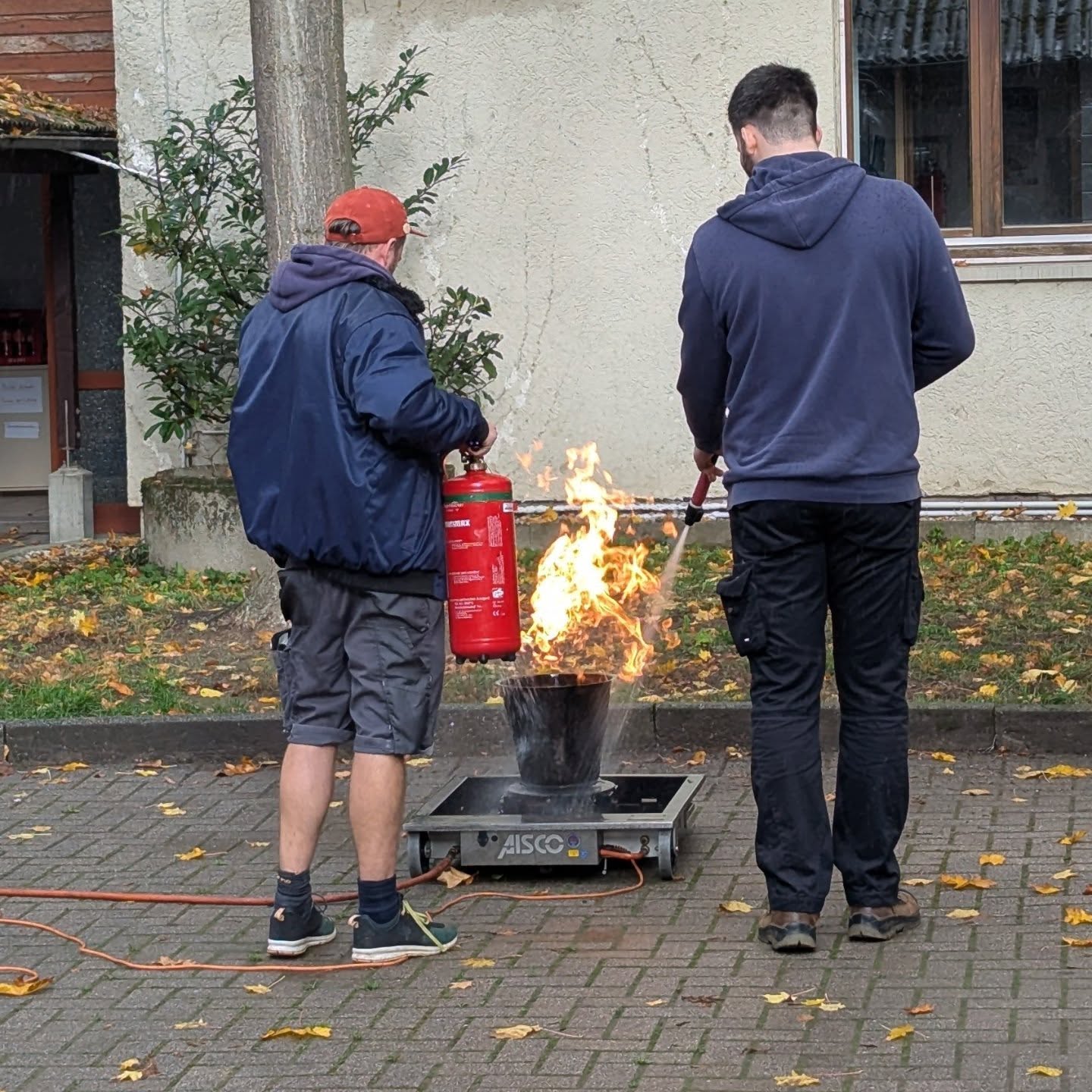 Zum Abschluss wurde uns der Umgang mit einem Feuerlöscher vertraut gemacht und wir durften Feuer löschen.