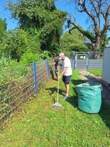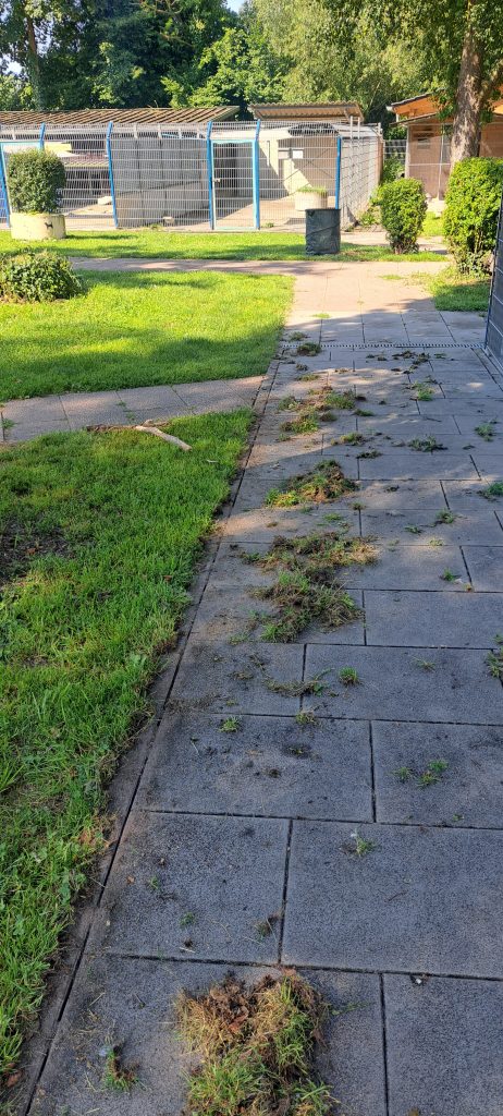 Heute waren mehrere freiwillige Helferinnen und Helfer im Tierheim, um den Grünwuchs zu bändigen! Trotz sengender Hitze wurde gejätet und getrimmt.