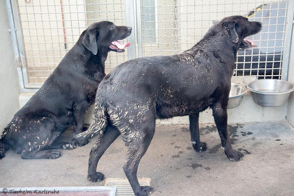 Die 10 Hunde, die als Tierschutznotfälle Ende April zu uns kamen, sind jetzt vom Kreisveterinäramt Südliche Weinstraße freigegeben worden. Sie können nun vermittelt werden. Es ist also gerade mal vier Wochen her, dass diese 10 Hunde völlig verdreckt und vollkommen verschreckt zu uns in das Tierheim Karlsruhe gebracht wurden.