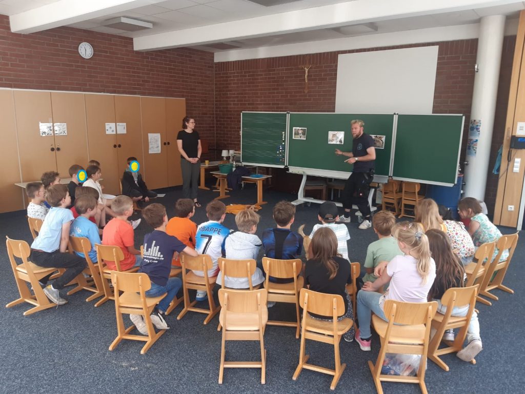Für den Tierschutz ist Öffentlichkeitsarbeit essentiell wichtig. Somit ist es für uns eine Selbstverständlichkeit der Anfrage von Grundschulen nachzukommen und die Kinder schon früh an Themen wie “Bedürfnisse von Haustieren”, “Tierheim”, “Tierschutz-was ist das?” oder “Umgang mit dem Hund” heranzuführen. Mit interaktivem Lernen werden die Kinder vorsichtig an die Themen herangeführt. “So still haben Sie noch nie mitgearbeitet” bestätigt Frau Jambon, Klassenlehrerin an der Carl-Benz-Schule in Marxzell-Pfaffenrot. Am 08.07.2024 war es so weit und unser Mitarbeiter Herr Jung und sein Hund Alvin sind ausgerückt um an der besagten Schule Tierschutz zu unterrichten. Als Dankeschön für das Engagement unser beiden Tierschützer im Außendienst bekamen wir materielle Spenden wie Futter, Spielzeug und Ähnliches, als auch eine finanzielle Spende die wir sehr gut gebrauchen können und unseren Tieren zu Gute kommt. Danke dafür 😀 Es hat den Kollegen bei euch gut gefallen!