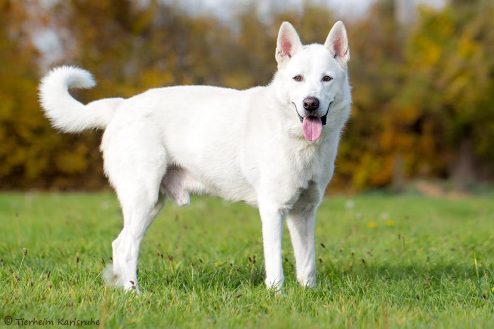 Auch wenn Nando aussieht wie ein weißer Schäferhund oder eine Mischung aus dieser Rasse und einem Husky, wurde uns von Nandos Erstbesitzerin mitgeteilt, dass er von einem Wurf eines Huskybesitzers stammt.