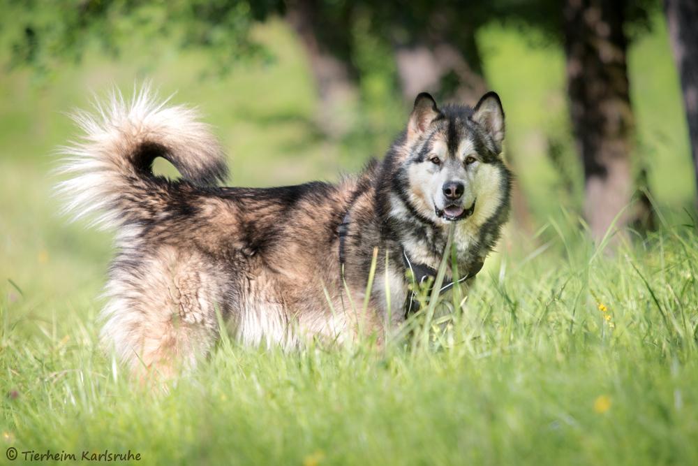 Sam kam zusammen mit drei weiteren Alaskan Malamutes zu uns ins Tierheim, weil die Besitzerin der Hunde verstorben ist.