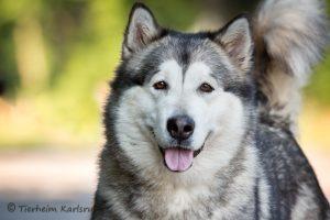 Luna kam zusammen mit drei weiteren Alaskan Malamutes zu uns ins Tierheim, weil die Besitzerin der Hunde gestorben ist.