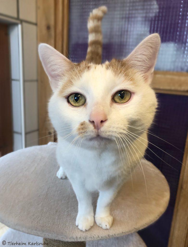 Minnie ist eine sehr freundliche, neugierige und verschmuste Kätzin. Sie ist auf beiden Augen erblindet, womit sie jedoch keinerlei Probleme hat. Minnie sucht ein neues Zuhause bei katzenerfahrenen Menschen, gerne dürfen im Haushalt auch Kinder leben, diese sollten jedoch schon älter sein (ab ca. 12 Jahren).