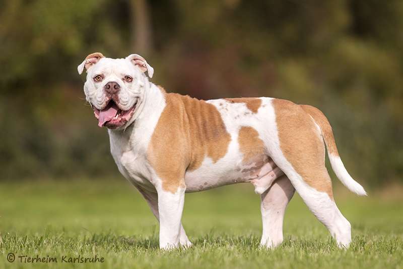Blade ist ein reinrassiger Old English Bulldog Rüde. Rassetypisch baut er zu seiner Bezugsperson ein sehr enges Verhältnis auf.