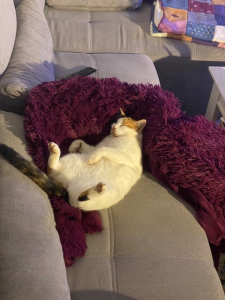 vor ziemlich genau einem Jahr habe ich Camilla (inzwischen heißt sie Emma) aus dem Tierheim zu mir nach Hause geholt. Bei der ersten Begegnung war sie super schüchtern und ich dachte mir Ohje , ob das was wird. Schon am ersten Abend daheim lag sie dann schnurrend in meinem Arm und seitdem sind wir unzertrennbar. Ich könnte mir kein Leben mehr ohne sie vorstellen und sie zu holen war die beste Entscheidung meines Lebens. Wir wollten danke für die tolle Arbeit sagen und euch ein paar Bilder zukommen lassen. Weiterhin alles Gute und eine schöne Weihnachtszeit :)