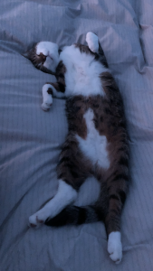 Mittlerweile ist er bald ein Jahr bei uns und ohne Zweifel, der schlauste, schnellste, lustigste, liebste und sauberste Kater den wir bisher hatten. Auch die Tierärztin war ganz entzückt und meinte er sei „kerngesund und sehr gepflegt“.