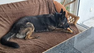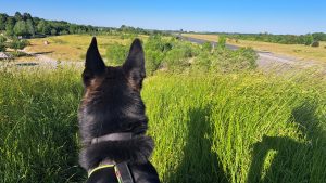 Luca ist jetzt schon fast ein Jahr hier bei mir in der Südpfalz und fühlt sich offensichtlich wohl. Wir sind oft unterwegs, meist am Wasser, auch bei der Arbeit scheint es ihm zu gefallen, vor allem wenn wir draussen sind. In der Hundeschule machen wir auch Fortschritte und lernen auch andere Hunde kennen. Ich hab euch ein paar Bilder von Luca angefügt.