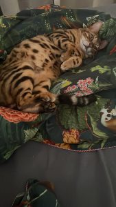 Vor 5 Monaten zog bei uns Simba ein. Ein gewagtes Projekt, denn er saß dort schon trotz seiner bildschönen Erscheinung seit 6 Monaten in Einzelhaft, wegen mehreren Beißvorfällen. Nachdem ich mich 4x 2 Stunden in seinen Käfig gesetzt habe und er mir gegenüber keine Aggression, zeigte durfte er mit nach Hause. Auf der Heimfahrt schrie er extrem laut und haute mit voll ausgefahren Krallen aus dem Gitter- so dass ich mir schon dachte: was macht er mit uns, wenn ich ihn in der Wohnung frei lasse? Aber dort angekommen inspizierte er das ganze Haus und war ruhig und freundlich und hat auch gleich gefressen. In der Eingewöhnungsphase habe ich ihn mit dem Katzengeschirr mit Schleppleine vertraut gemacht und wir haben gemeinsam den Garten und Scheune erkundet. Und nach angemessener Zeit durfte er alleine raus. Dort mischte er erstmal die Katzen der Umgebung auf und es kam zu ein paar Revierkämpfen, von denen er etwas zerrupft und mit dicker Pfote zurückkam. Das hat sich in der Zwischenzeit ganz gelegt. Zuhause schmust er sehr gerne und freut sich sichtlich wenn er uns sieht werden wir lautstark begrüßt. Wenn wir ihn rufen kommt er ganz schnell angeschossen- weil es dann Leberwurst aus der Tube gibt! Auch Besucher mag er gerne und bei Festen ist er mitten drin. Er ist ein sehr guter Jäger und dezimiert unseren Wühlmäusebestand im Garten ganz toll! Wir sind so froh, dass wir ihn bekommen haben und lieben ihn sehr! Und weil er so süß ist heißt er jetzt Muffin🥰!