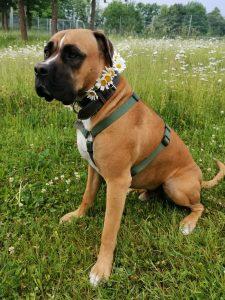 Ares kann gut alleine bleiben, beherrscht die Grundkommandos, ist in reizarmen Umgebungen an seinem Menschen orientiert und kennt das Tragen eines Maulkorbs.