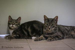Wir sind zwei junge, unzertrennliche Kater Kater und wünschen uns endlich ein ruhiges Zuhause, in dem wir ankommen dürfen. Unser Start ins Leben war turbulent. Wir kommen aus einem Haushalt mit 35 anderen Katzen. Deshalb reagieren wir in neuen Situationen zunächst etwas vorsichtig und schreckhaft.