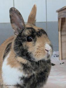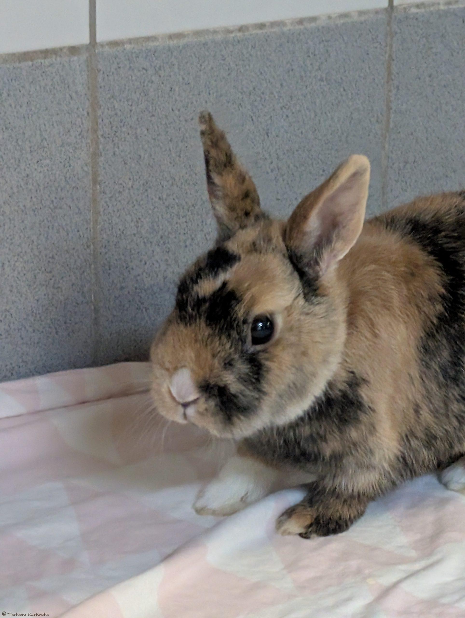Lilly ist eine 7-jährige Zwergkaninchen-Dame, die im März 2026 zu uns kam. Bei der Eingangsuntersuchung wurde eine Verhärtung im Bauchbereich festgestellt. Der Ultraschall zeigte einen Gebärmuttertumor, der am 31. März erfolgreich entfernt wurde.